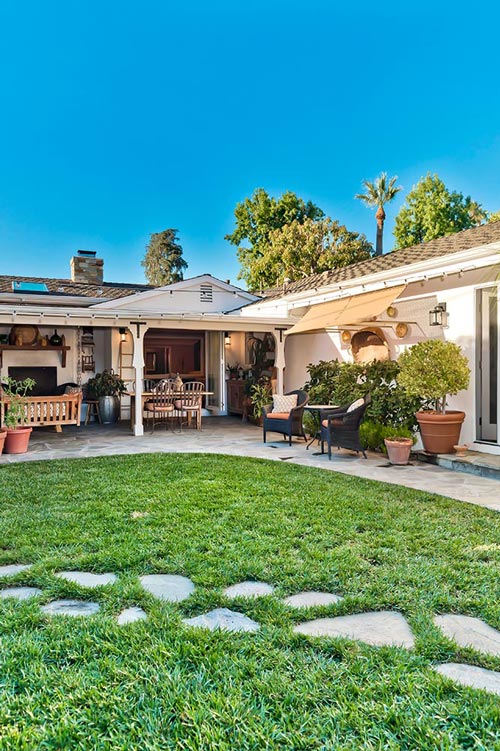 One-story completely renovated Mellenthin in coveted Hidden Woods enclave of Sherman Oaks. Award-winning designer Karen Tandy has created a masterwork oozing with character and charm. Features 4 bedrooms, family room, breakfast room, 2 bathrooms, great room with fireplace, chef’s kitchen, oak wood flooring, skylights, covered patio w fireplace, large master suite, great indoor-outdoor flow. 2-car garage. The house is set back off the street for privacy, and the grounds in both front and back are simply soulful and inspiring.
